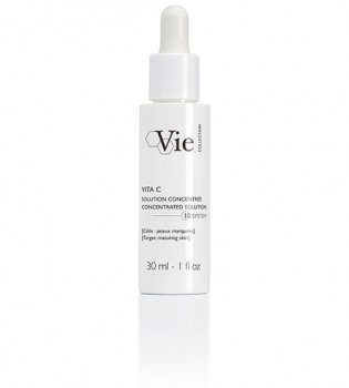 VITA C Solution ConcentréeUn concentrato vitaminico rivitalizzante su misura per le pelli segnate, rugose e devitalizzate.[Derivato di Vitamina C al 10 %] : riattiva le funzioni biologiche della pelle, rilancia la sintesi di collagene e cattura i radicali liberi.